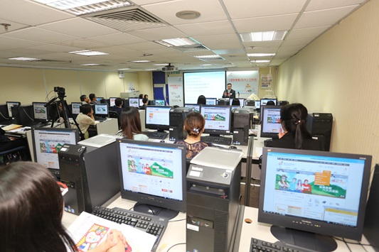 Workshop participants try out the useful tools available on the MPFA website with the computers provided.