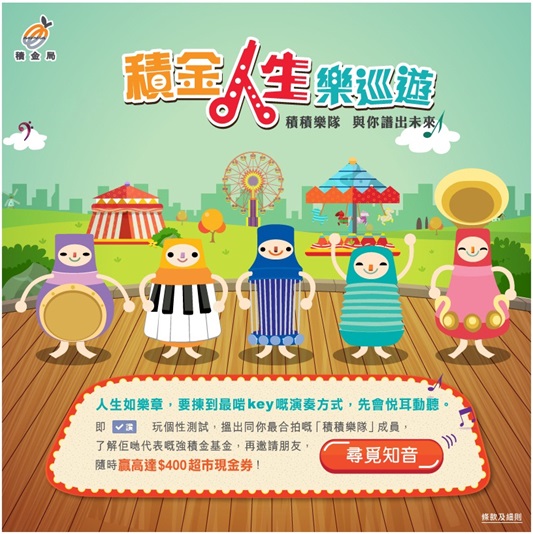The Mandatory Provident Fund Schemes Authority (MPFA) today (12 January) launched an online game on Facebook. It helps identify the player’s personality and which members of the “JJ Five” band have a similar investment risk appetite. The game introduces the “JJ Five” band members, each representing a type of MPF fund, along with their respective features and risk levels. Scheme members can make reference to these features when they choose MPF funds. The “JJ Five” band members are Kam Ka Chun (equity fund), Kam Ka Kwan (mixed assets fund), Kam Ka Pong (bond fund), Kam Ka Ching (guaranteed fund), and Kam Ka Po (MPF Conservative Fund). Participants also have a chance to win a prize after completing the game.