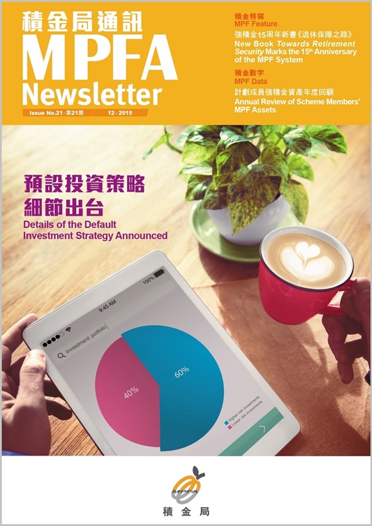 MPF Feature introduces the MPFA’s new book Towards Retirement Security, which was published to mark the 15th anniversary of the System. The article MPF Data provides an annual review of scheme members’ MPF assets. Also in this issue is an introduction to the MPFA newly launched retirement planning mobile application and a feature on the MPFA’s first Good MPF Employer Award presentation ceremony.