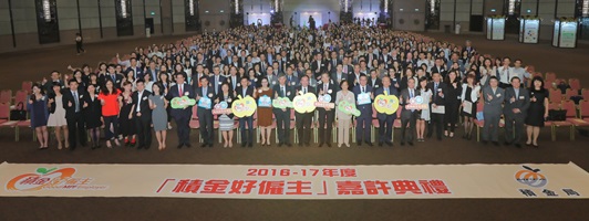 Secretary for Labour and Welfare Dr Law Chi-kwong and Chairman of the Mandatory Provident Fund Schemes Authority Dr David Wong with guests and representatives of organizations awarded the Good MPF Award 2016-17.
