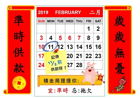 Since the coming 10 February is a Sunday, the contribution day is extended to the following day (11 February). As there are three Lunar New Year holidays before the contribution day in February, the MPFA reminds employers and human resources practitioners to allow sufficient time to complete the contribution process, including making contributions and submitting remittance statements to the trustees.
