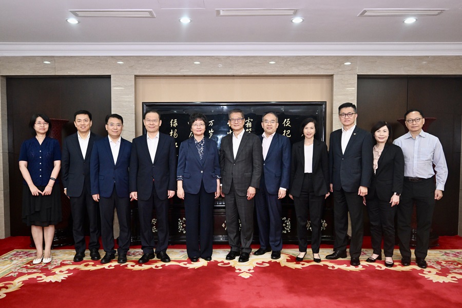 MPFA Chairman Mrs Ayesha Macpherson Lau, and Managing Director Mr Cheng Yan-chee joined the Financial Secretary Mr Paul Chan to meet with the Minister of Human Resources and Social Security Ms Wang Xiaoping.