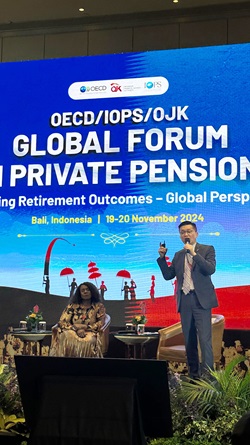 MPFA Managing Director Cheng Yan-chee participated in annual meetings of the International Organisation of Pension Supervisors (IOPS) and the Global Forum on Private Pensions jointly organized by IOPS, the Organisation for Economic Co-operation and Development, and the Indonesian Financial Services Authority (OJK) in Indonesia from 18 to 20 November 2024.