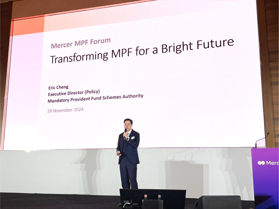MPFA Executive Director (Policy) Mr Eric Cheng spoke at an MPF forum on 28 November, sharing the most recent advancements in the MPF System and key initiatives undertaken by the MPFA to enhance the accumulation of retirement savings for the working population.