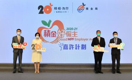The GMEA presentation ceremony, held in the Hong Kong Convention and Exhibition Centre with live webcast, was officiated by Secretary for Labour and Welfare Dr Law Chi-kwong, Commissioner for Labour Mr Chris Sun Yuk-han, and MPFA Chairman Mrs Ayesha Macpherson Lau and Acting Managing Director Cheng Yan-chee.