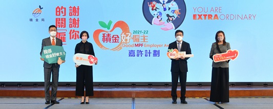 The MPFA held the Good MPF Employer Award (GMEA) 2021-22 Presentation Ceremony today (6 October). Now in its 8th consecutive year since launch in 2015, this year’s GMEA adopted the theme “You are EXTRAordinary!” to recognize exemplary employers who strived to protect and enhance the retirement benefits of their employees. This year, a total of 1,903 companies and organizations received the award, which was a record and a 9% increase over that of last year. Among them, 17% or 321 companies and organizations were first-time participants, indicating that a growing number of employers value the importance of retirement protection for their employees.