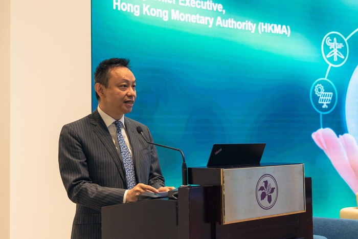 Deputy Chief Executive of the HKMA, Mr Darryl Chan, gives welcome remarks at the seminar.