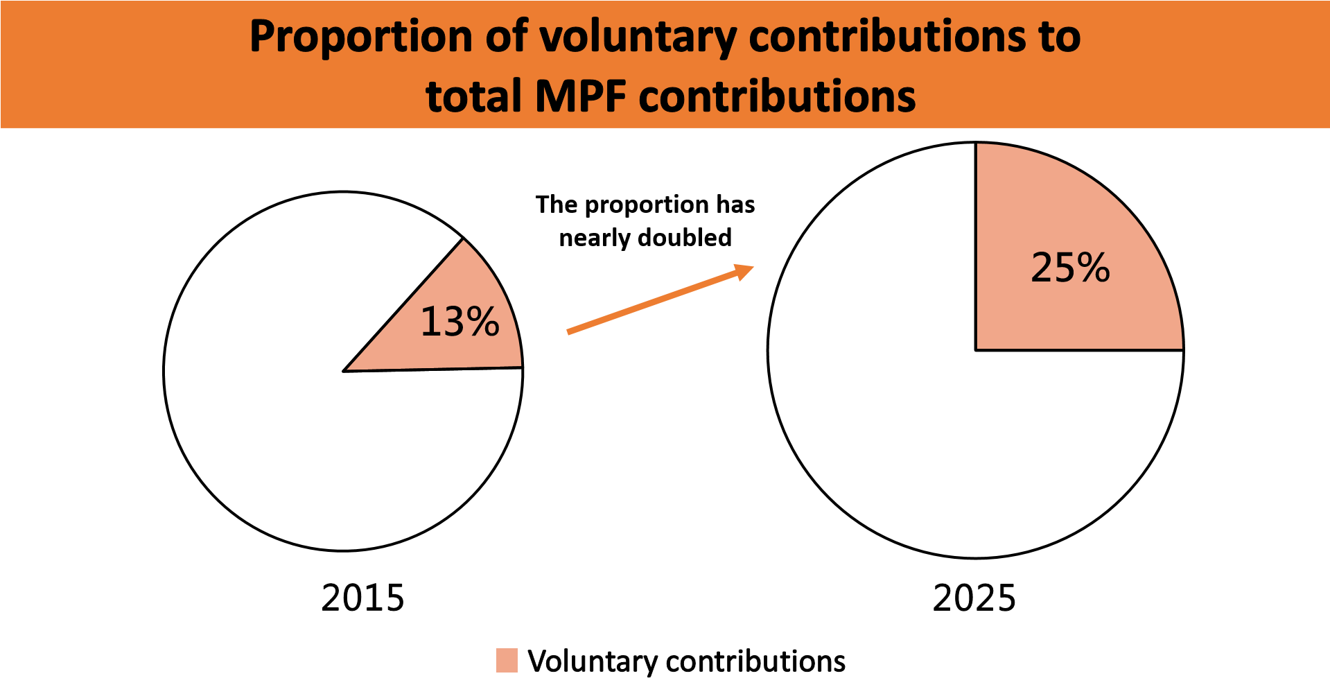 In addition to mandatory contributions, there was an increasing number of employees and employers making voluntary contributions. In the first three quarters of this year, voluntary contributions accounted for 25% of total MPF contributions, nearly double the proportion recorded during the same period a decade ago. This reflects growing public confidence in the MPF as a tool for enhancing retirement reserves.