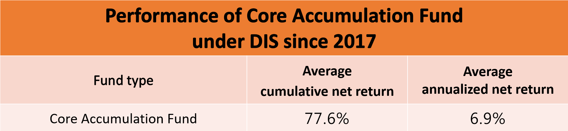 She added that the default investment strategy (DIS, “funds for lazy people”), launched in 2017, is prudently designed with a diversified investment approach and fee caps. Its value-for-money features help increase retirement reserves. Since its launch, the Core Accumulation Fund under DIS has recorded, on average, an annualized net return of 6.9%, exceeding the annualized inflation rate of 1.8% for the same period. This is a heartening achievement. With MPF schemes joining the eMPF Platform (eMPF), the DIS fee cap needs to be reduced further, contributing to higher net investment returns.