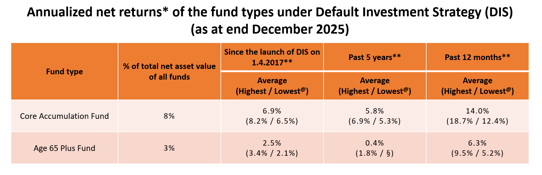 @ “Highest” and “Lowest” refer to the highest and lowest annualized net returns among individual funds in each fund type during the relevant period respectively.