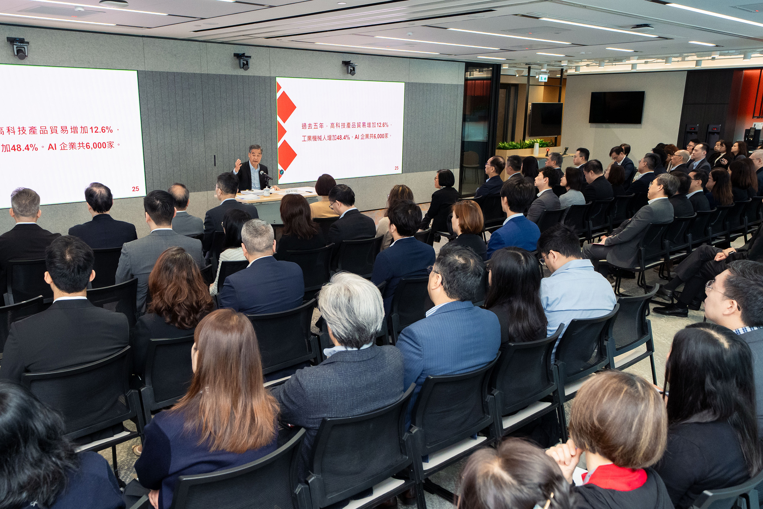 圖二:梁振英副主席在積金局舉辦的「兩會」講座上,分享今年「兩會」及國家「十五五」規劃的主要內容。