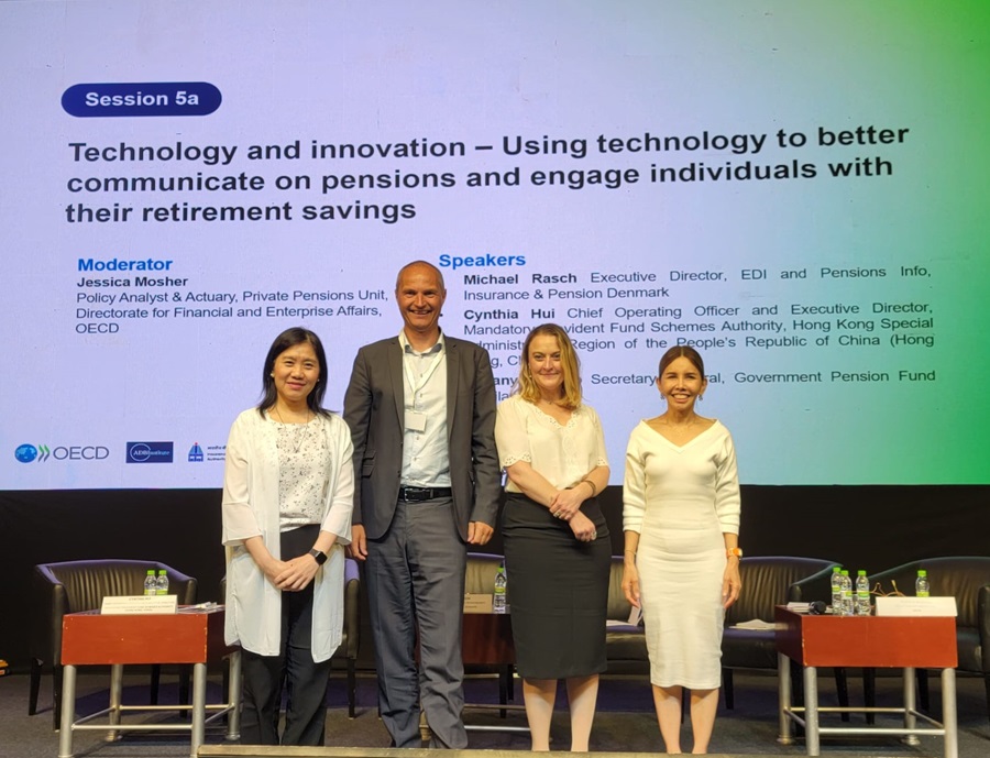 積金局參與經合組織牽頭主辦的海外會議向國際退休金及業界專家介紹積金易平台(2023年5月25日)
