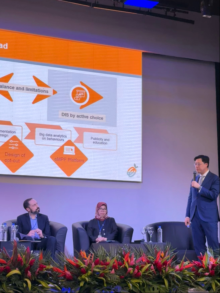 於國際研討會上,鄭兆勛在討論人生階段投資的環節上擔任演講嘉賓,分享預設投資策略在設計上的優勢、自推出以來的成果和經驗,以及未來的挑戰。