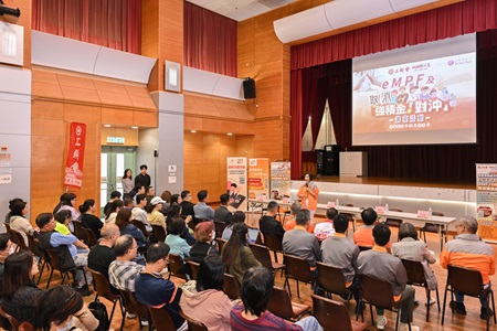 積金局主席劉麥嘉軒、機構事務總監劉家麒和積金局代表於上週日(3月23日)出席由香港工會聯合會(工聯會)在筲箕灣舉辦的講解會,向超過100名工聯會代表及會員,以及港島區街坊工友介紹「預設投資策略」,分享「積金易」的最新發展和各種好處,以及聽取他們對強積金制度和退休保障的意見。積金易外展隊亦有派員講解和即場協助街坊工友註冊「積金易」。