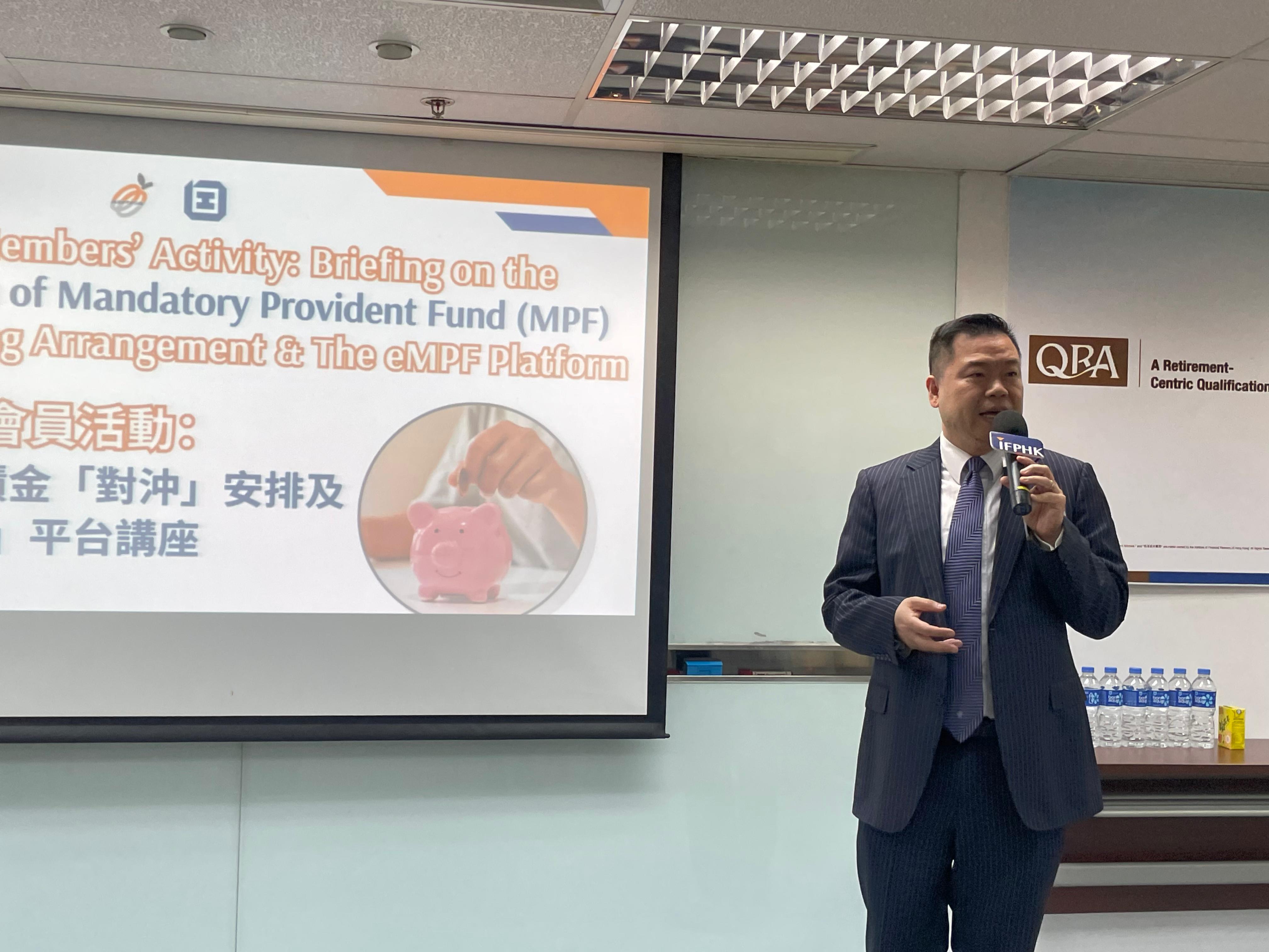 積金局政策法規部主管尤浩然日前(5月12日)出席由香港財務策劃師學會主辦的講座,向財務策劃及強積金業界人士簡介「積金易」的功能和好處。他表示,現時已有由六個受託人提供的合共九個強積金計劃加入了「積金易」平台,讓有關僱主及計劃成員透過「積金易」處理強積金行政事宜。