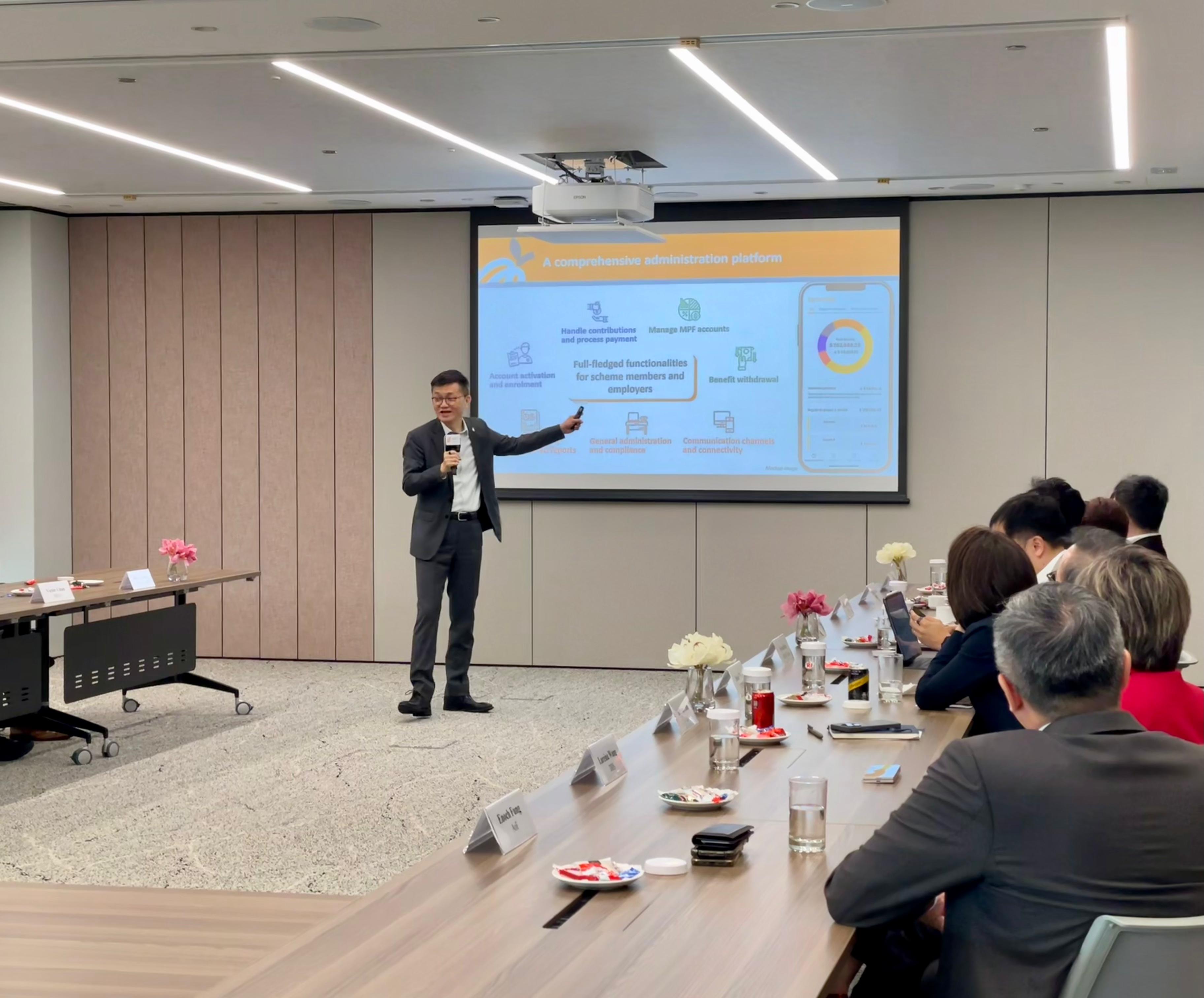 積金局行政總監鄭恩賜在7月16日出席由金融學院主辦與「金融領袖計劃」參加者對談會,與來自不同金融機構的未來領袖分享強積金的功能及一系列優化措施。