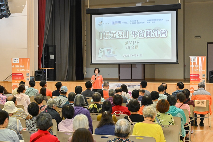積金局主席劉麥嘉軒、機構事務總監劉家麒及「積金易」外展隊於9月21日前往深水埗,向過百名街坊工友介紹「積金易」的最新發展、好處、功能和支援服務。「積金易」外展隊亦即場協助參加者註冊「積金易」和解答他們的查詢。