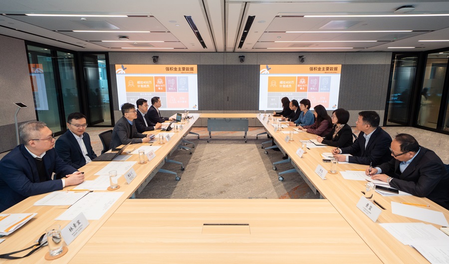 積金局行政總監鄭恩賜及積金局人員早前接待人力資源和社會保障部(人社部)代表團,介紹強積金制度和「積金易」的最新發展,以及預設投資策略的特點,並就退休保障制度發展互相分享經驗和作深入技術交流。