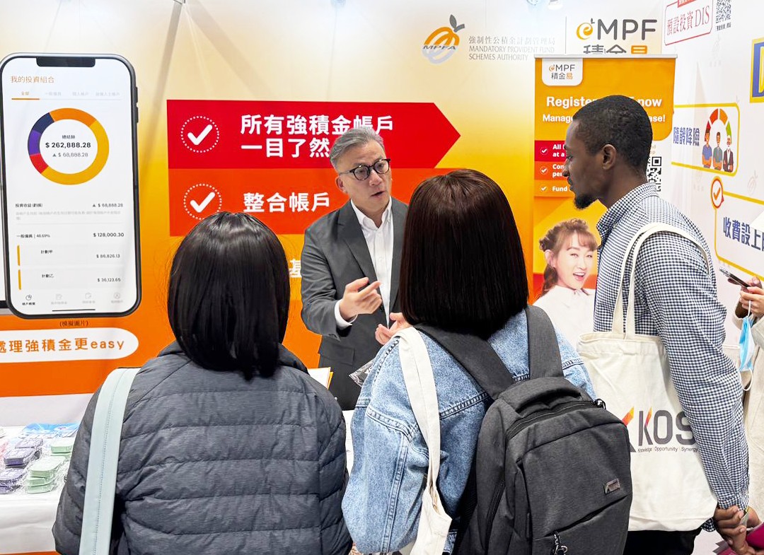 積金局聯同「積金易」外展隊早前參與由香港人才服務辦公室舉辦的人才博覽展,並設立「積金易」宣傳攤位,協助來自內地及海外的人才即場註冊「積金易」,以便他們日後更靈活地管理強積金。