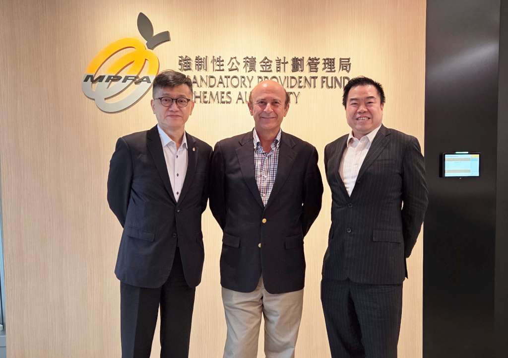 積金局行政總監鄭恩賜及政策法規部主管尤浩然於3月31日與美國「外交政策協會」總裁兼首席執行官Noel Lateef會面,簡介強積金制度的特點及最新發展,包括「積金易」平台和預設投資策略,並就雙方共同關注的議題交換意見。