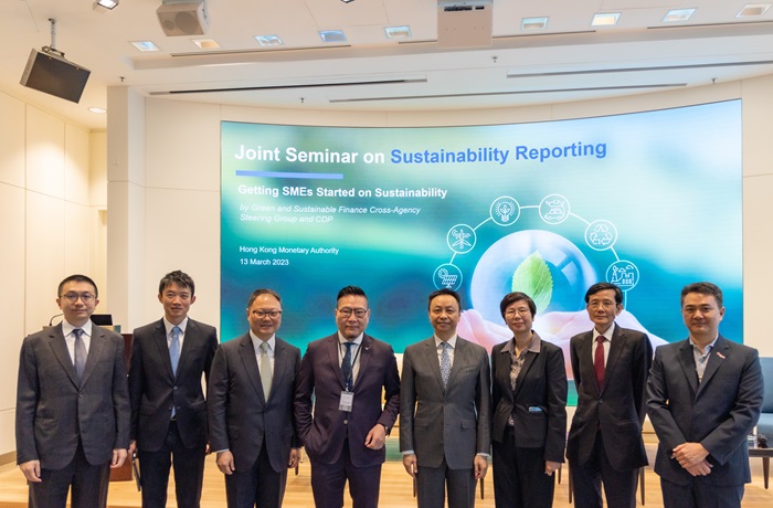研讨会讨论了可持续发展报告的重要性和益处,特别是中小企业如何使用督导小组的问卷(注)向持份者传达它们在可持续发展方面的工作,以及金融机构如何使用问卷向客户收集气候数据并支持它们的低碳转型。研讨会由香港金融管理局(金管局)副总裁陈维民主持开幕,随後CDP亚太区董事总经理陈佳远和香港中华厂商联合会会长史立德亦分别发表主题演讲。来自不同界别的专家在之後的小组讨论和案例交流环节分享了关於可持续发展报告和使用督导小组问卷方面的见解和经验。