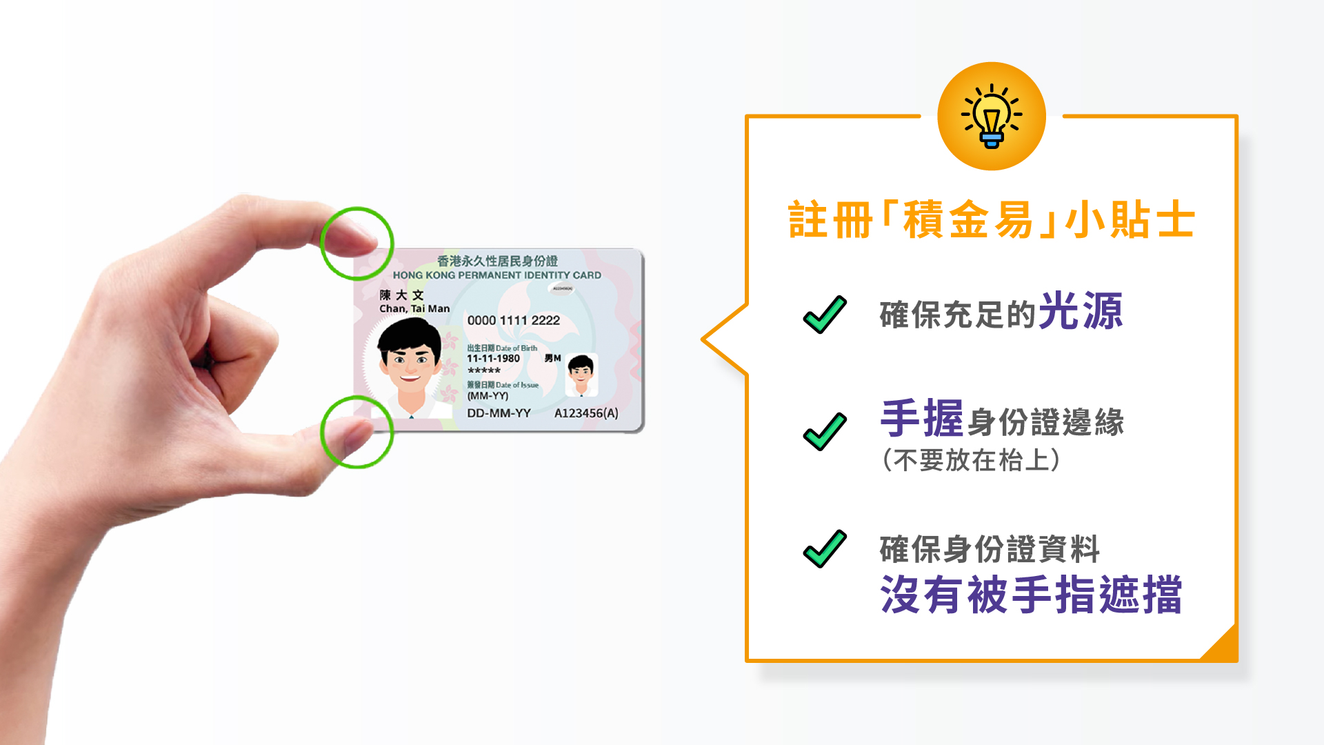 另外,「积金易」团队持续优化服务及系统运作,例如以智能身份证验证身分的流程上,优化闪光灯反射光点的拍摄功能,令读取智能身份证防伪特征的过程更方便快捷;加入更清晰的指引,配合图文示范,提醒用户如何手持身份证拍照。刘太又建议用户透过「智方便」进行身分验证,过程同样容易流畅。