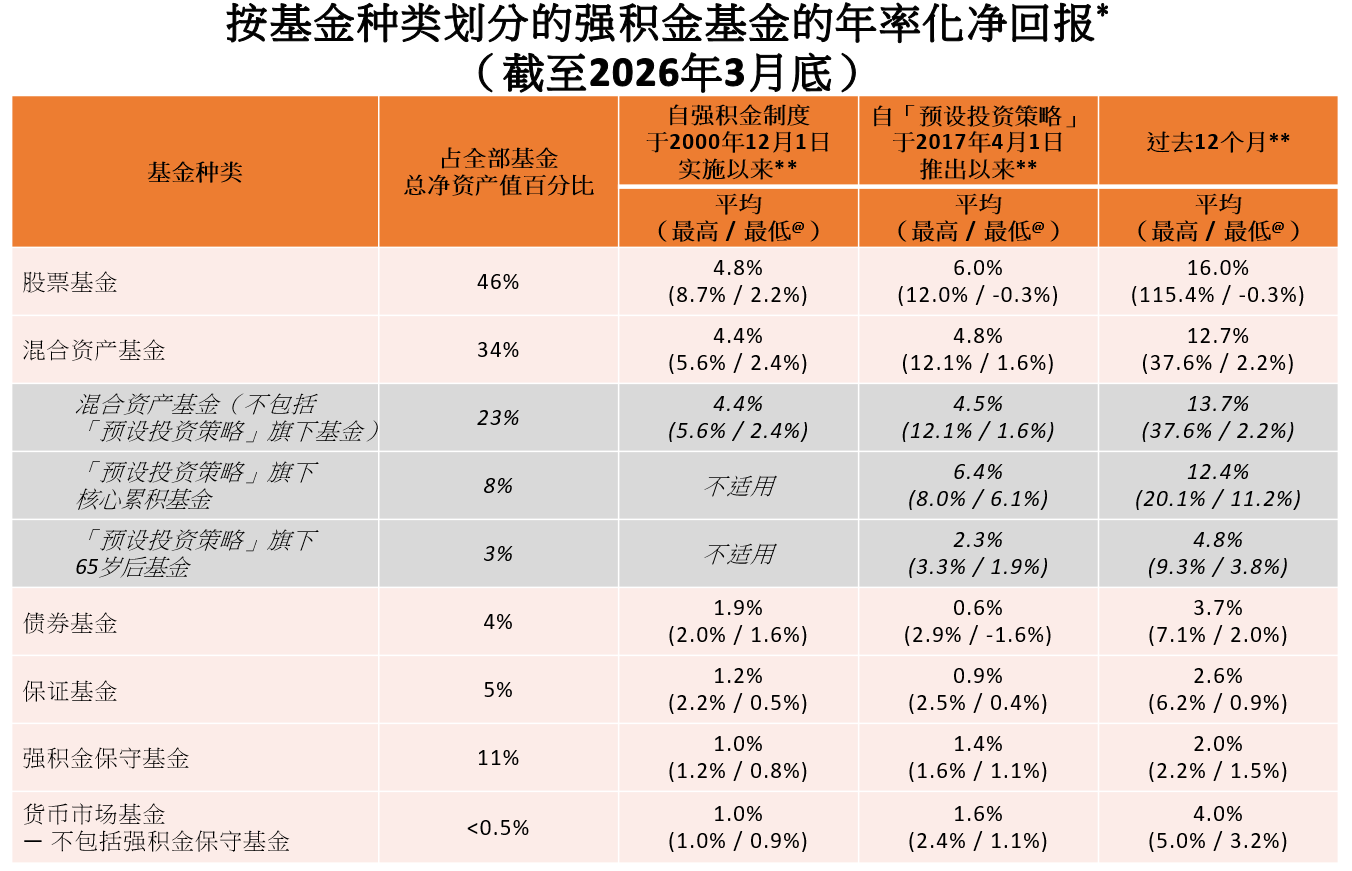 积金局今天(4月8日)公布截至2026年3月底的强积金投资回报临时数据。各基金种类的回报临时数字详情如下: