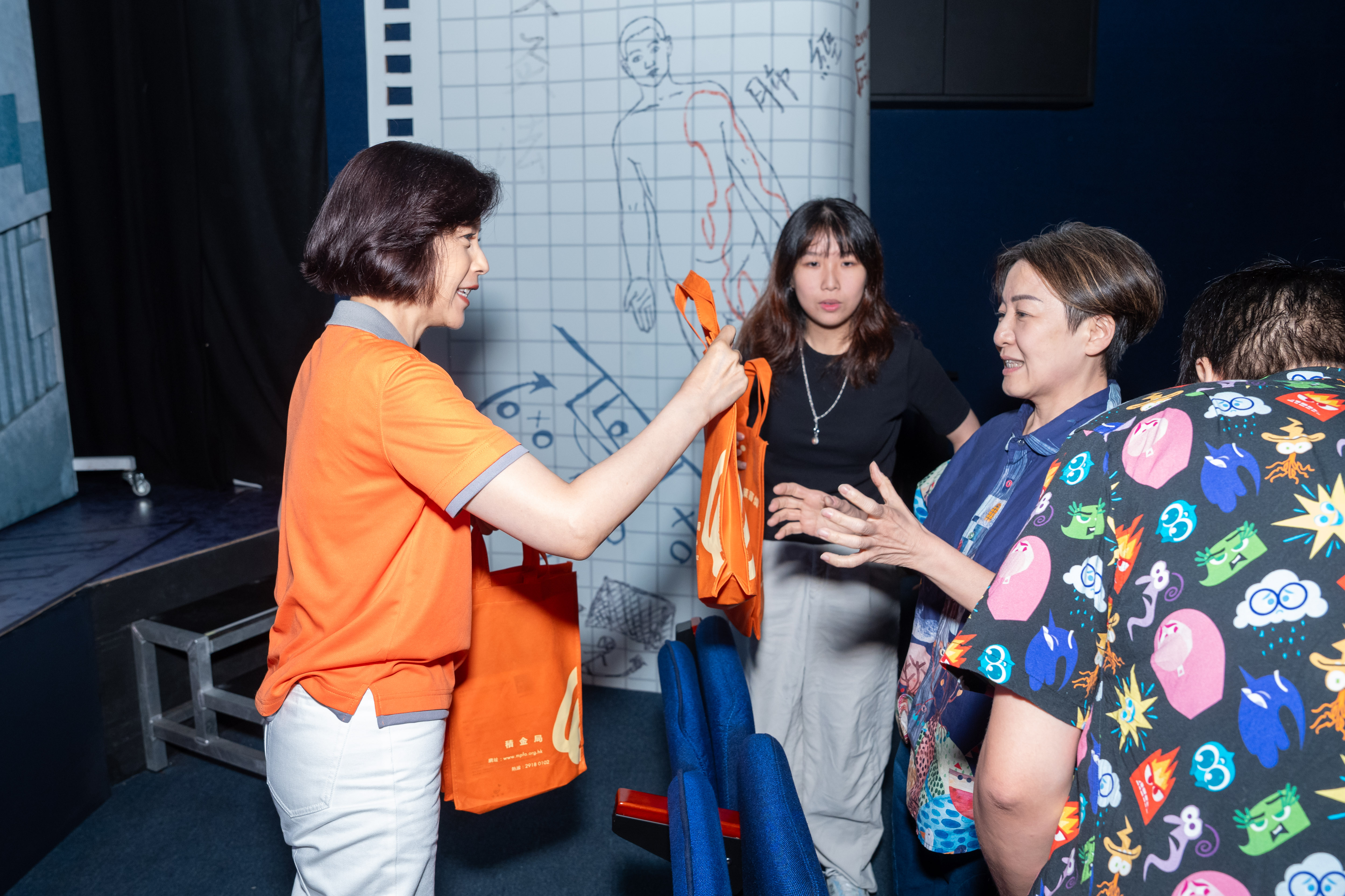 积金局主席刘麦嘉轩和机构事务总监刘家麒于6月30日到访爆炸戏棚,向一班表演艺术工作者介绍「预设投资策略」,分享「积金易」的最新发展,以及听取他们对强积金制度和退休保障的意见。