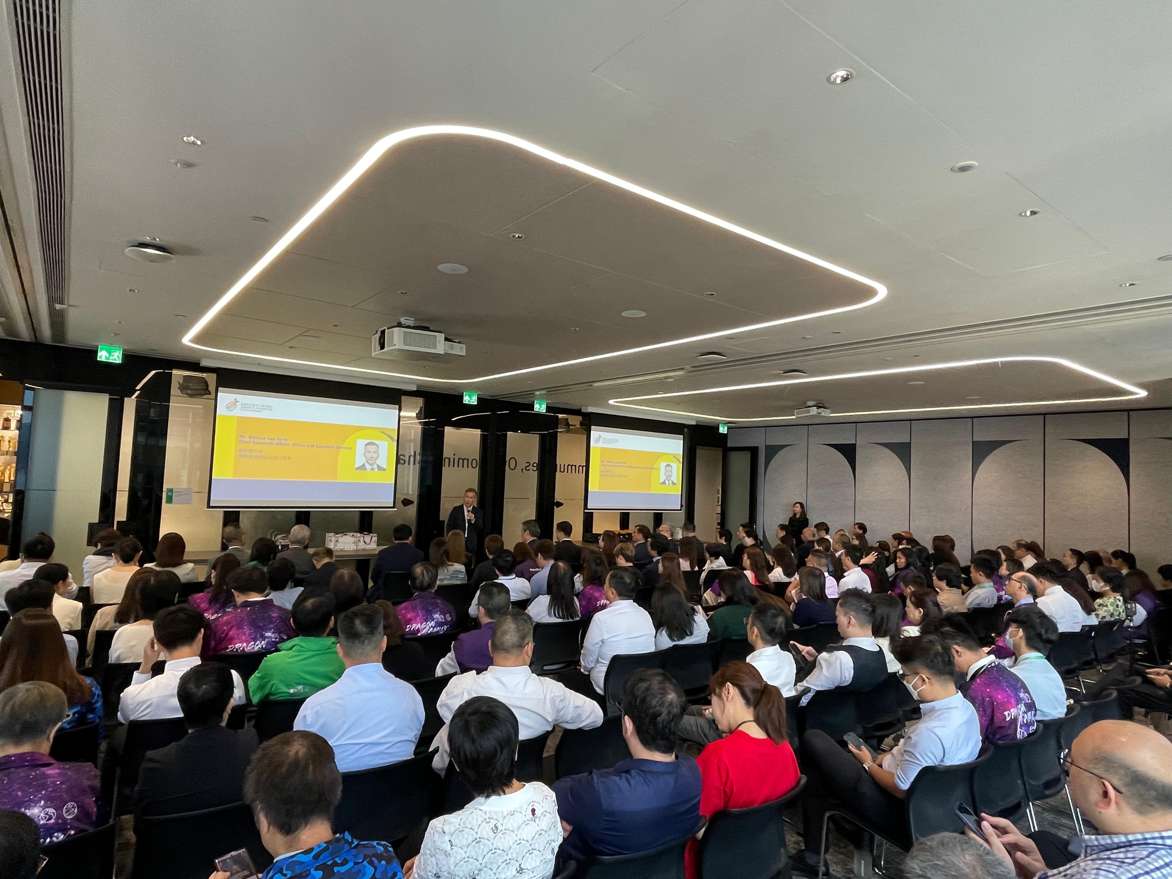 积金局机构事务总监刘家麒于9月18日出席一个由强积金受托人举办的金中介人会议,鼓励约300位中介人把握「积金易」平台所带来的机遇,积极发掘在「数码积金新世代」下可以为客户提供的新服务。