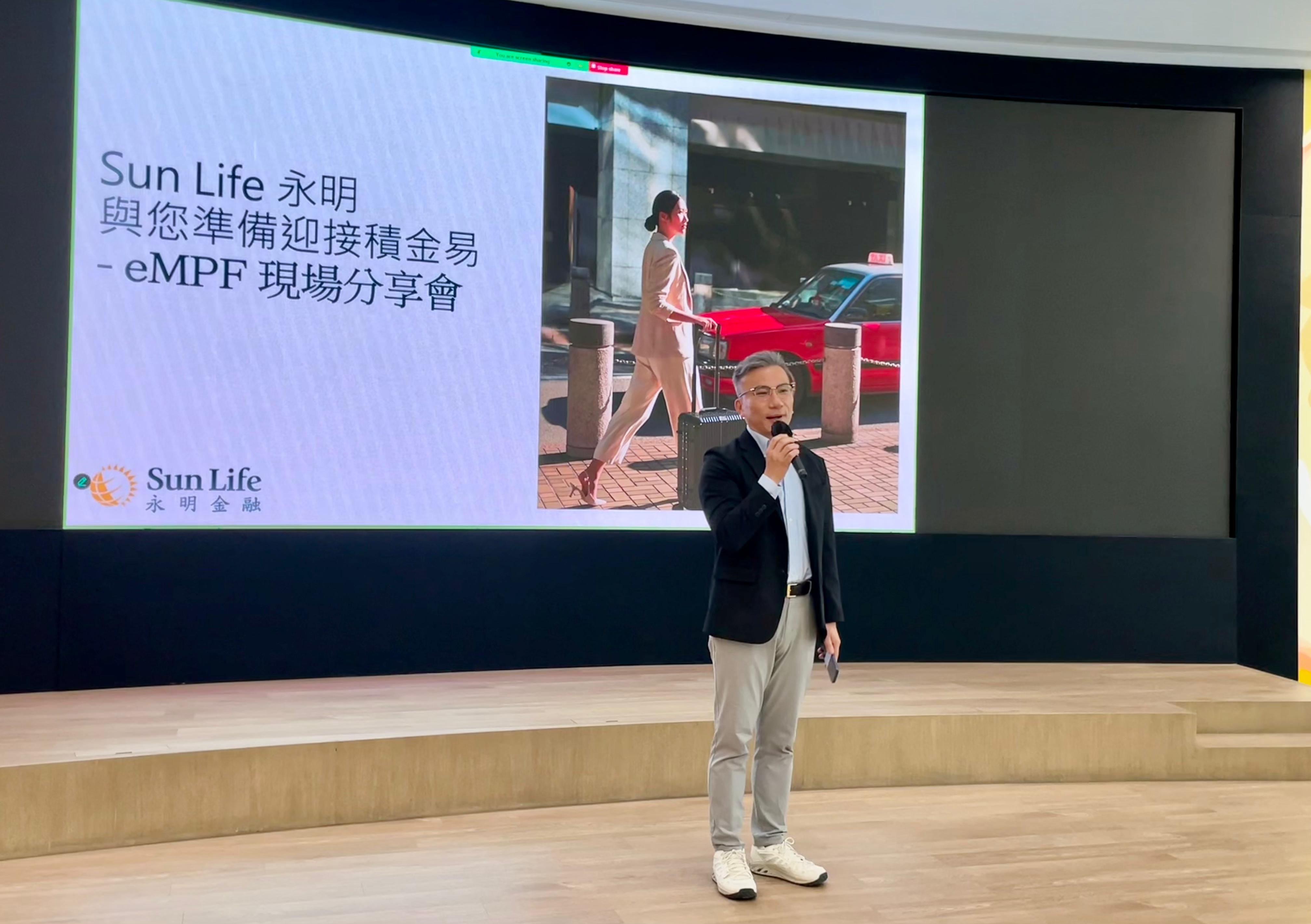 积金局机构事务总监刘家麒于9月22日出席一个由强积金受托人举办的「积金易」中介人讲座。他表示,「积金易」不但可降低强积金行政收费,令打工仔女直接受惠,强积金中介人更能透过「积金易」电子平台,为客户提供更优质和快捷的服务。