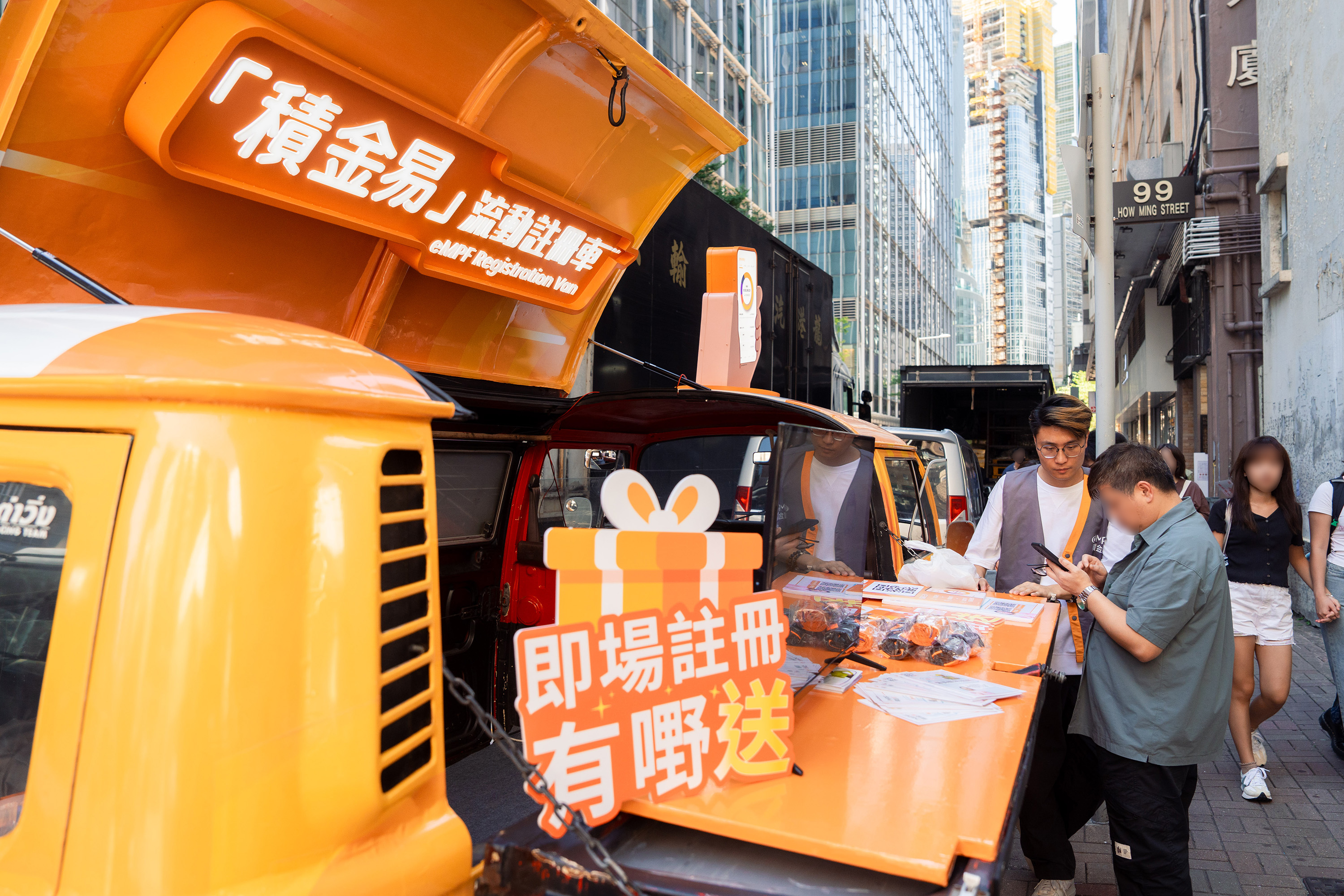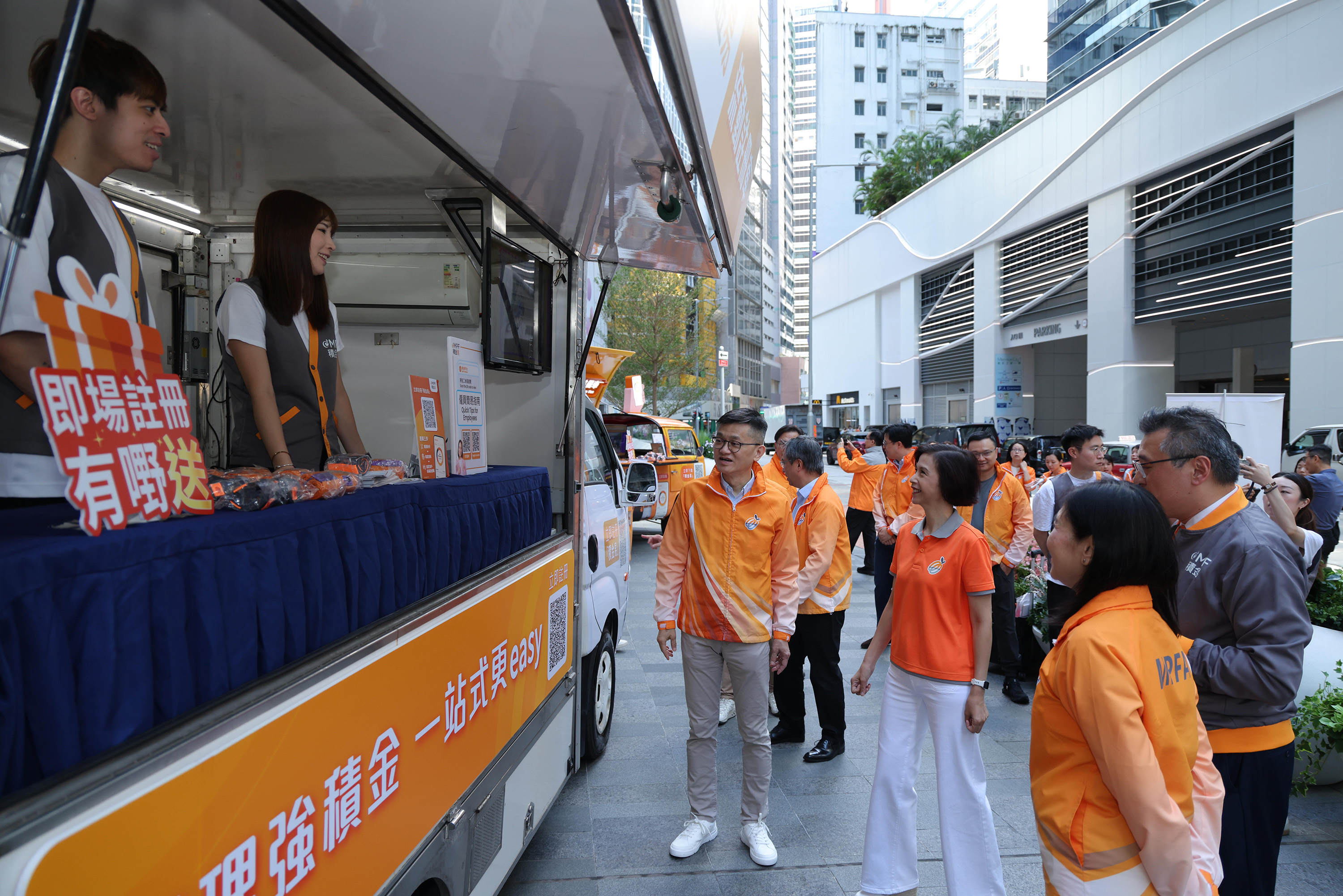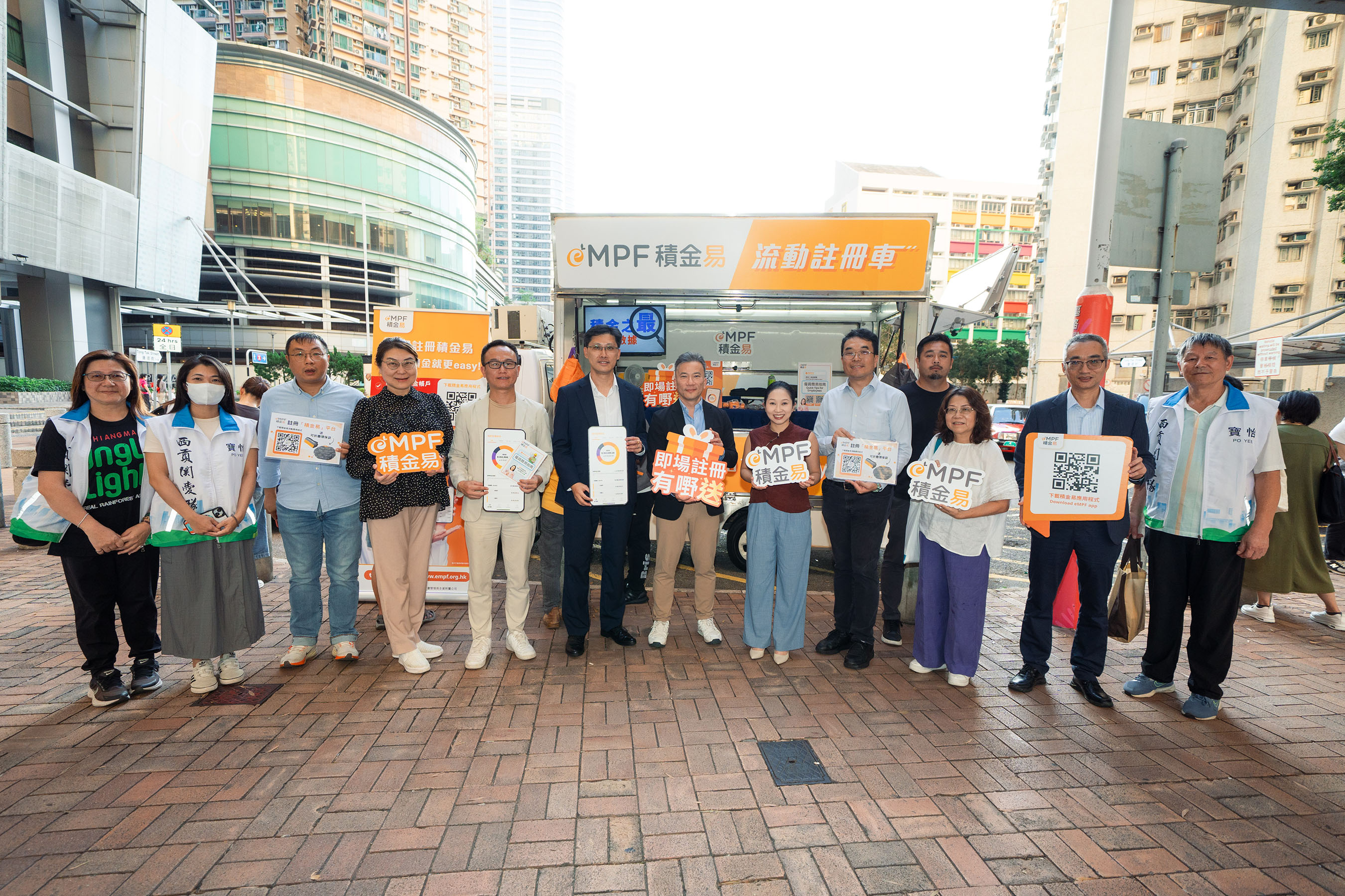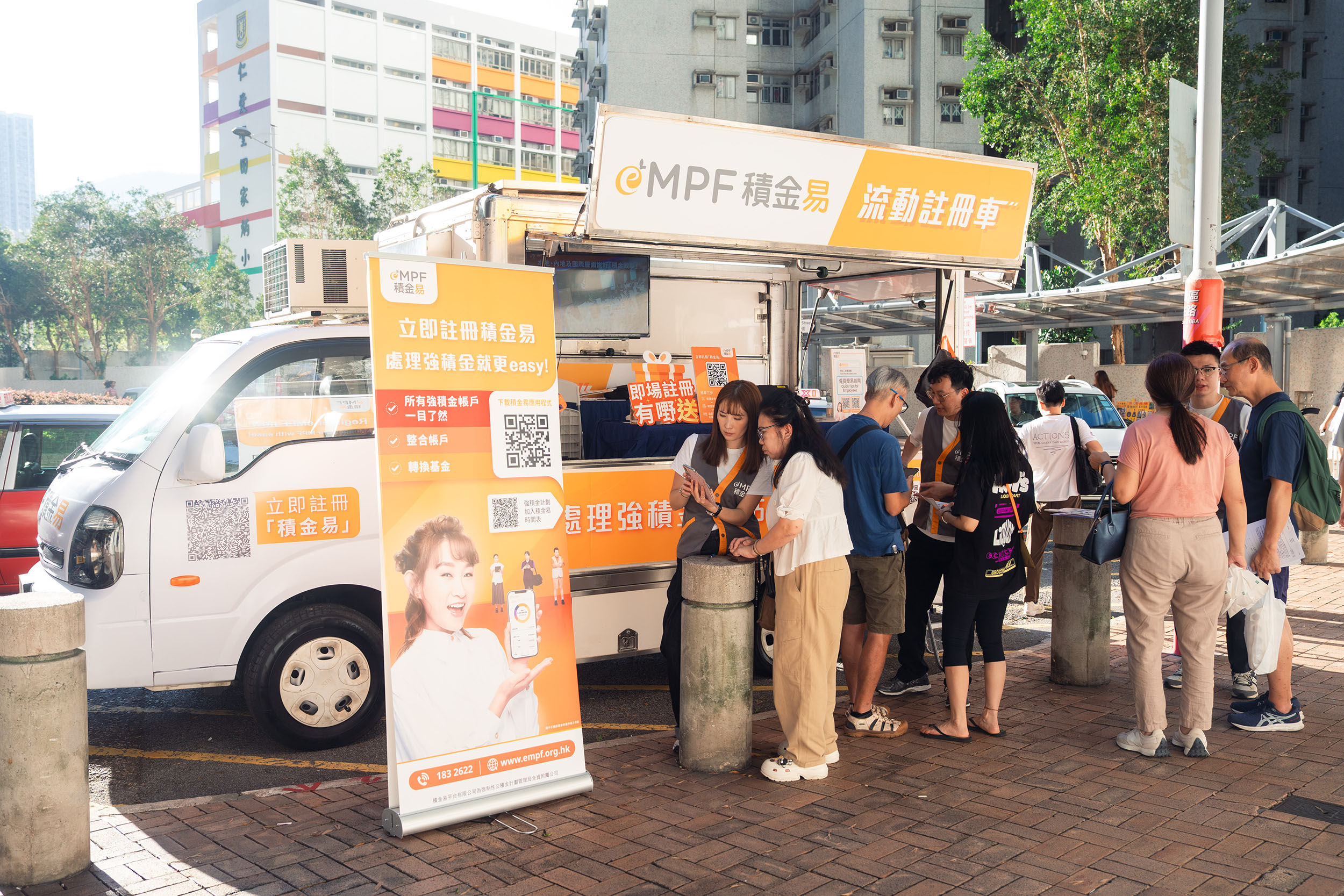 配合「积金易」平台最后阶段和最大规模的上台安排,积金局及积金易平台公司今日(10月15日)成立「积金易」车队,前往港九新界不同地区,协助打工仔女认识「积金易」,并即场提供注册服务,做到「走匀十八区 注册零距离」。