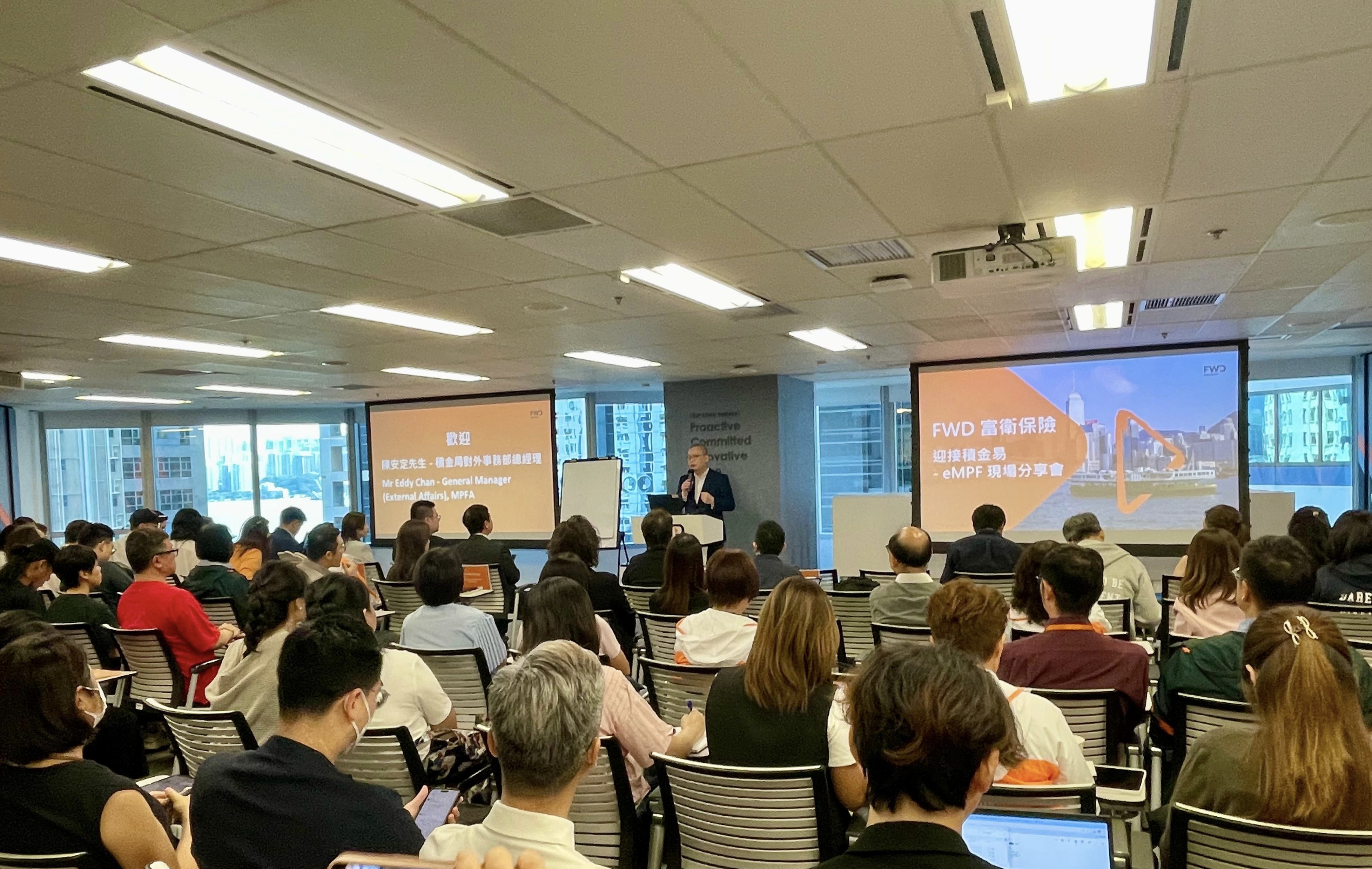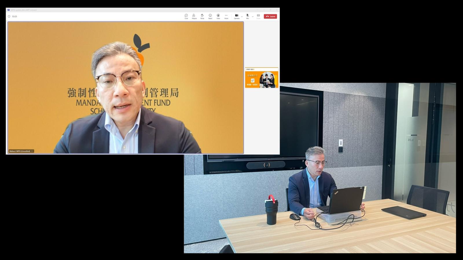 积金局机构事务总监刘家麒及对外事务部总经理陈安定于10月出席多场由受托人举办的「积金易」讲座,向强积金中介人介绍「积金易」平台的好处和带来的机遇。