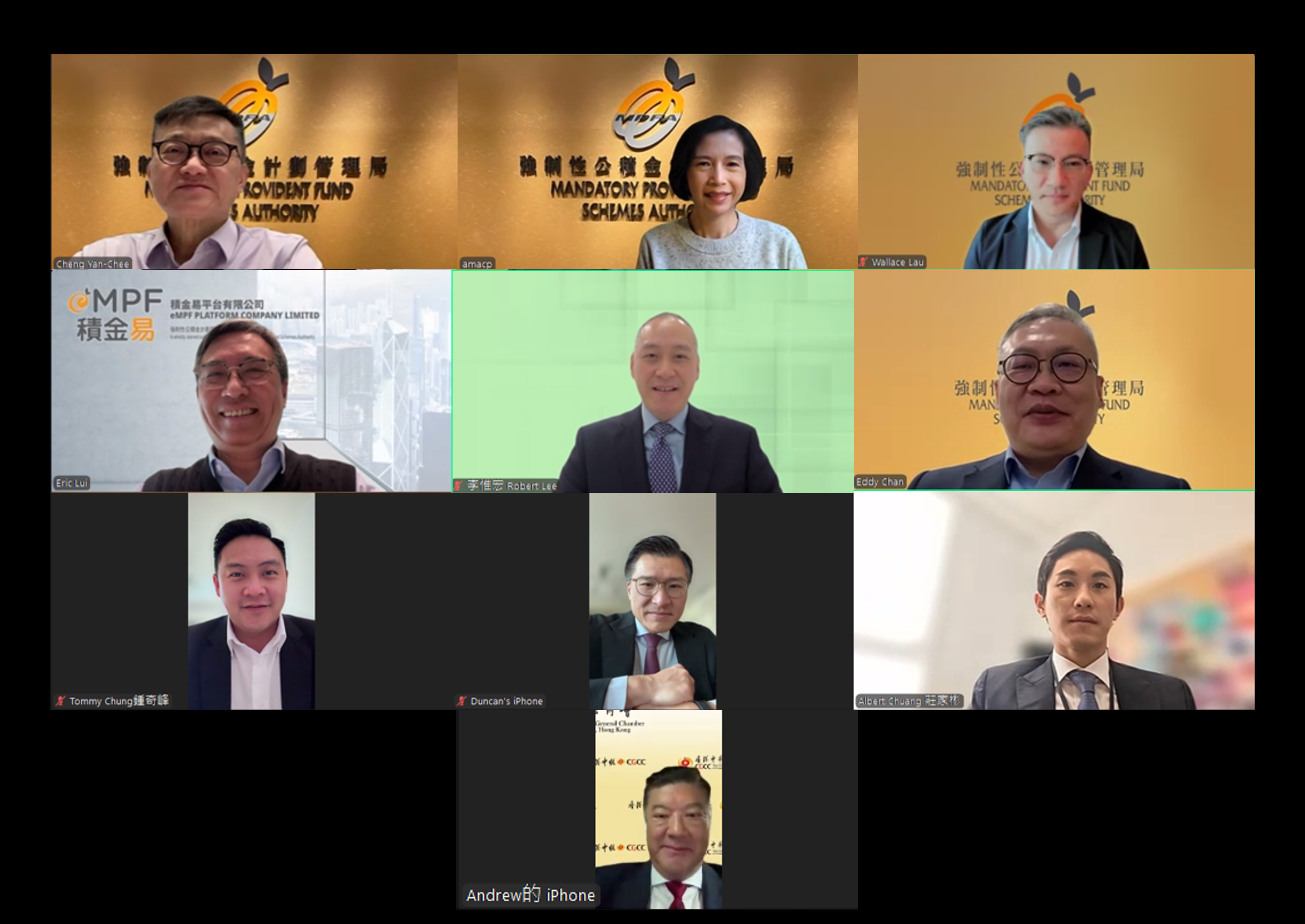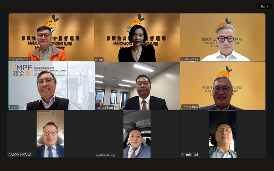 积金局主席刘麦嘉轩带领行政总监郑恩赐、机构事务总监刘家麒以及积金易平台有限公司行政总裁吕志坚,于过去一个星期与多位立法会议员线上会面, 介绍积金局在2026-27年度的工作重点,包括「积金易」平台的最新进展,以及各项完善强积金制度的措施。