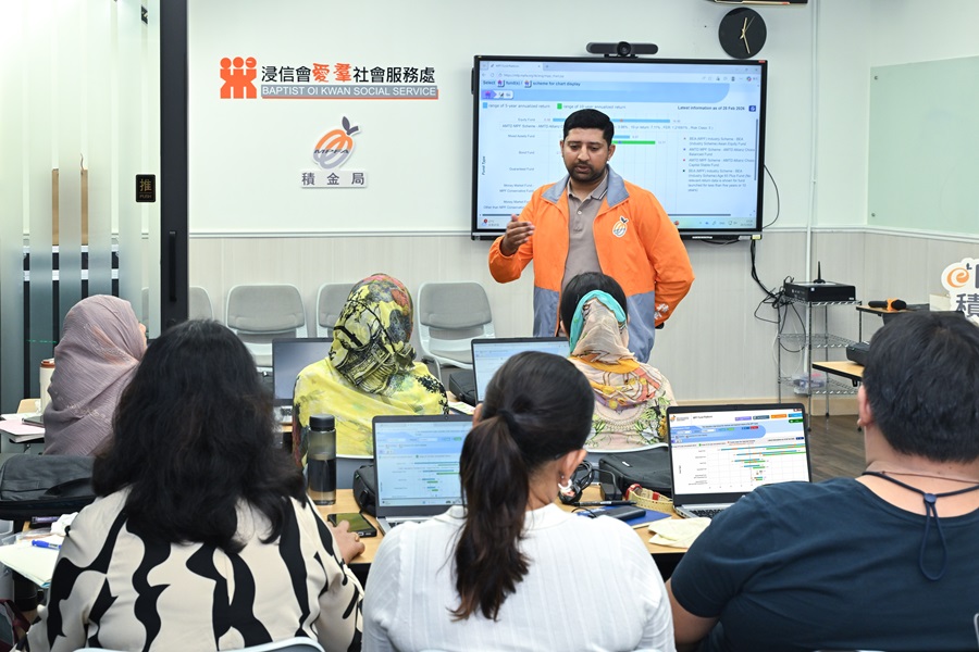 积金局与浸信会爱羣社会服务处携手推行「手提电脑捐赠计划」,向少数族裔求职者捐赠手提电脑,同时举办三场就业培训讲座,协助他们为投身职场做好准备。积金局人员即场为参加者提供乌尔都语传译支援。